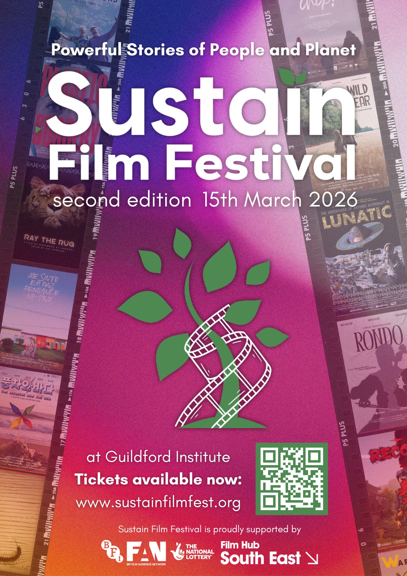 Sustain is a film and animation festival based in Guildford. This will be the 2nd year of the festival that is themed around the environment. We seek stories and artworks far and wide – local, regional, national and global. We want to bring people together to promote the future wellbeing of the planet, as well as the current cultural wellbeing of its inhabitants.