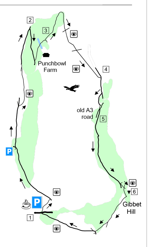 START: The walk begins at the National Trust Punch Bowl car park (postcode GU26 6AB).